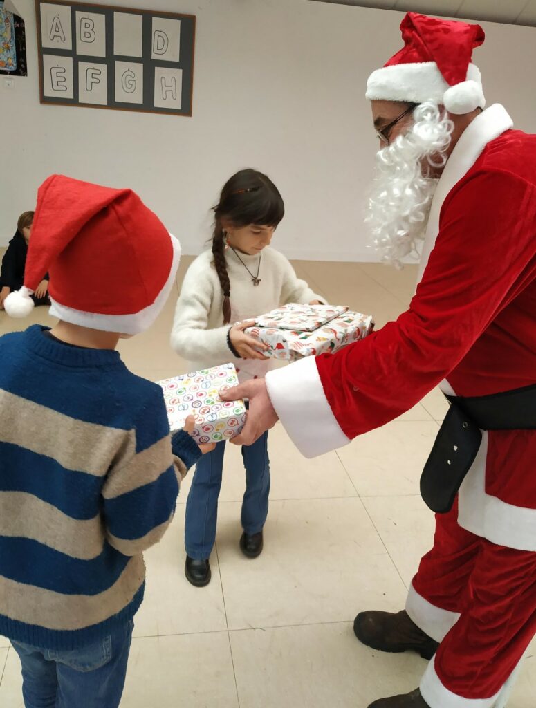 C’est en chanson que les élèves ont reçu la visite du Père-Noël à l’école. Chaque classe a reçu des cadeaux et partagé un bon goûter offert par l’APEL !