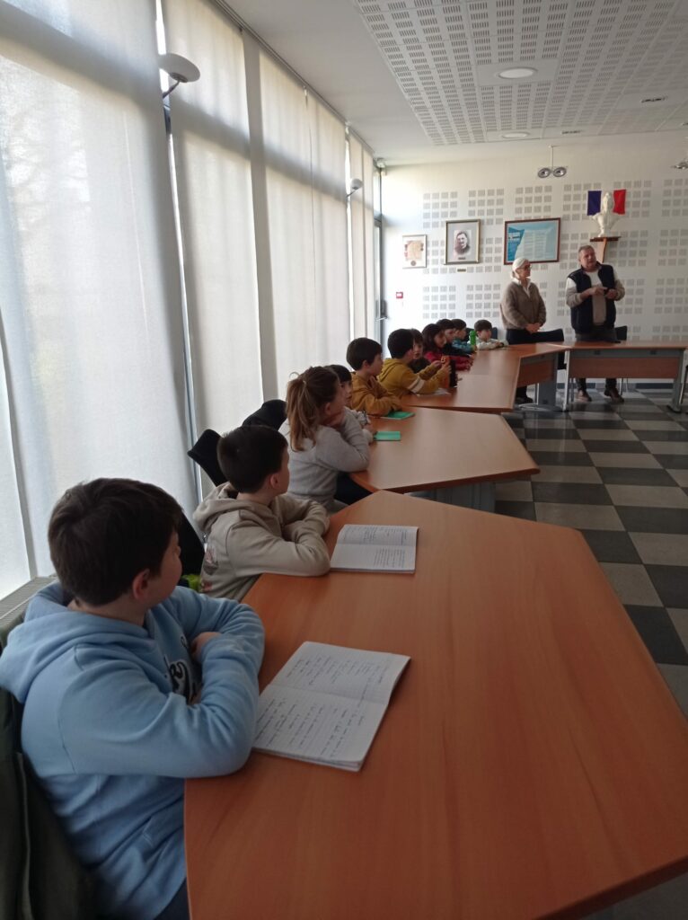 Mardi matin, la classe de CE1/CE2 de Christine NEDELEC est allée visiter la mairie. Le Maire, Ronan CREDOU et Gaëlle BERROU, 1ère adjointe, ont accueilli les élèves. Après avoir répondu aux questions préparées par les enfants dans la salle du Conseil Municipal, ils ont visité les différents services de la Mairie : accueil, urbanisme, état-civil, bureaux…