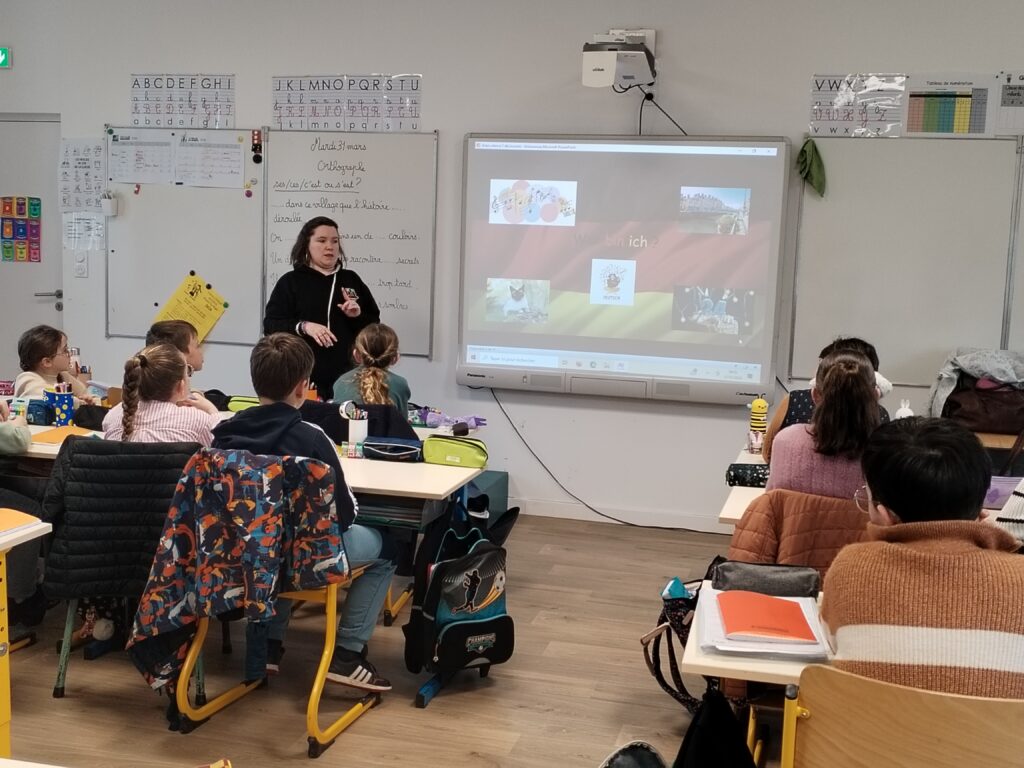 Eléonore Marcel, professeure d’allemand au collège Saint-Gabriel, est intervenue auprès des élèves de CM1-CM2 ce mardi 31 mars.